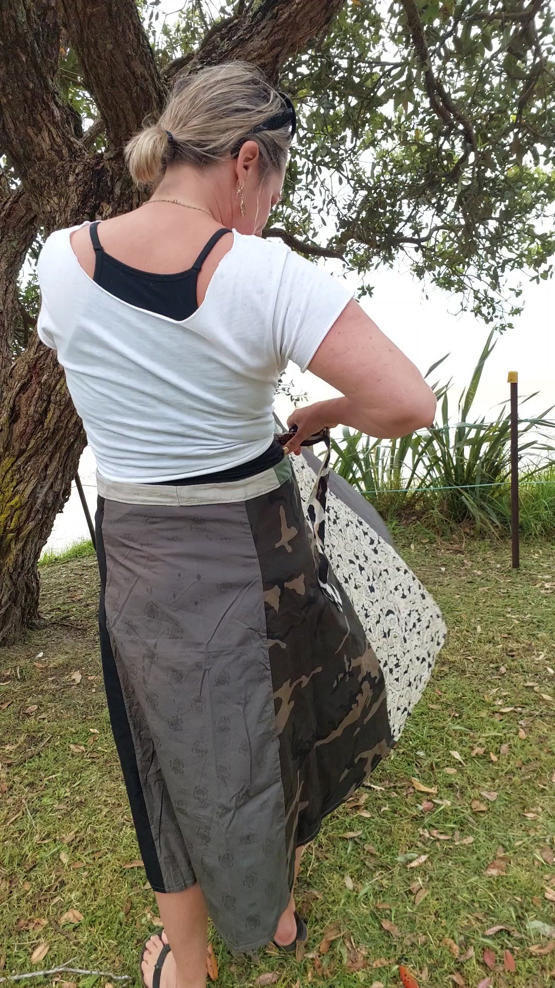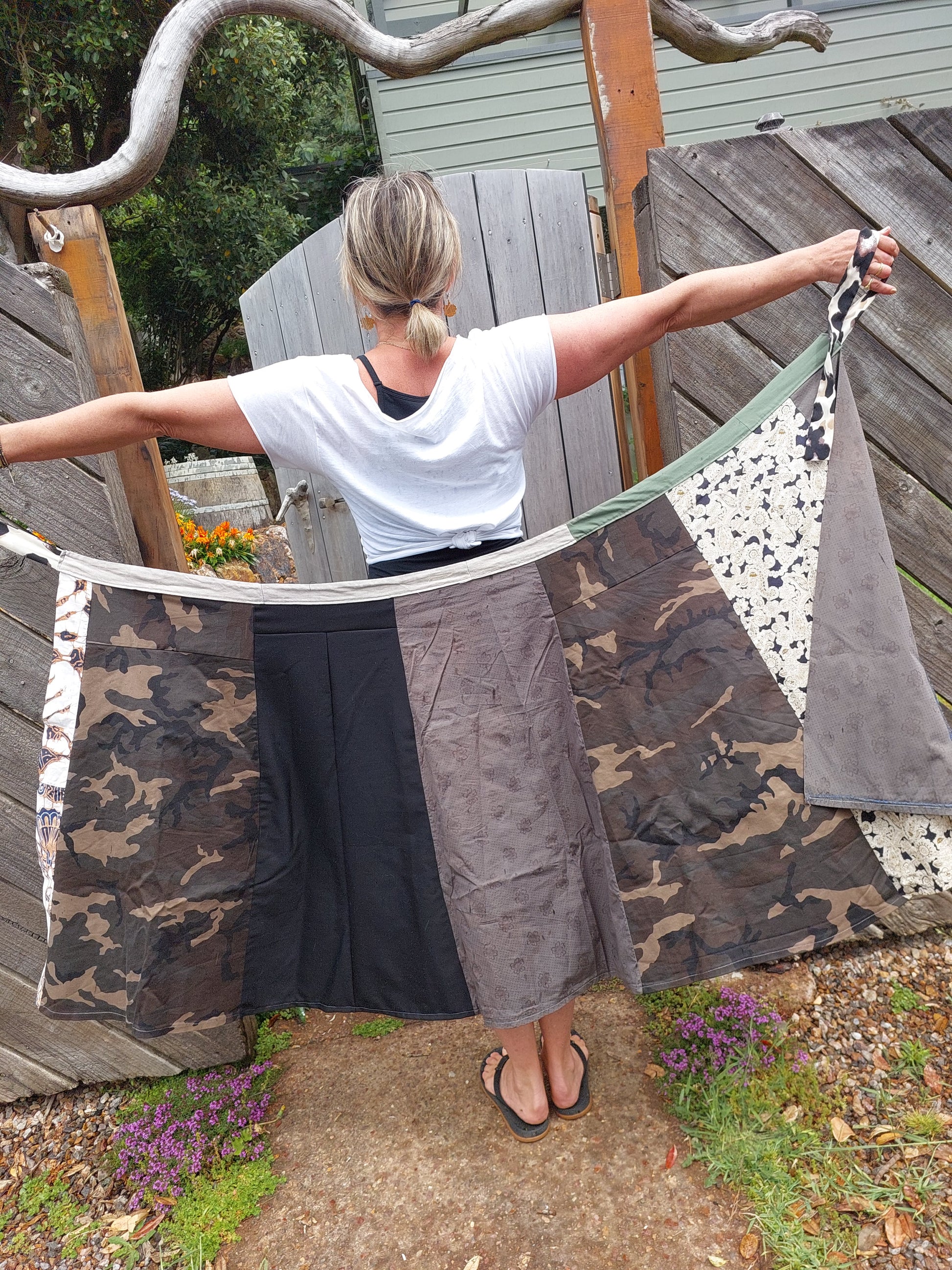 *upcycled from skirts, pants, duvets and tablecloths, mostly cotton mix